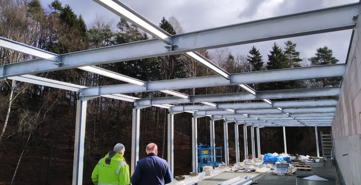 příprava, výroba a montáž ocelové konstrukce + montáž střešní krytiny včetně okapů a svodů povrchová úprava OK: žárový zinek střešní krytina: trapézový plech celková hmotnost: cca 12 700 kg
