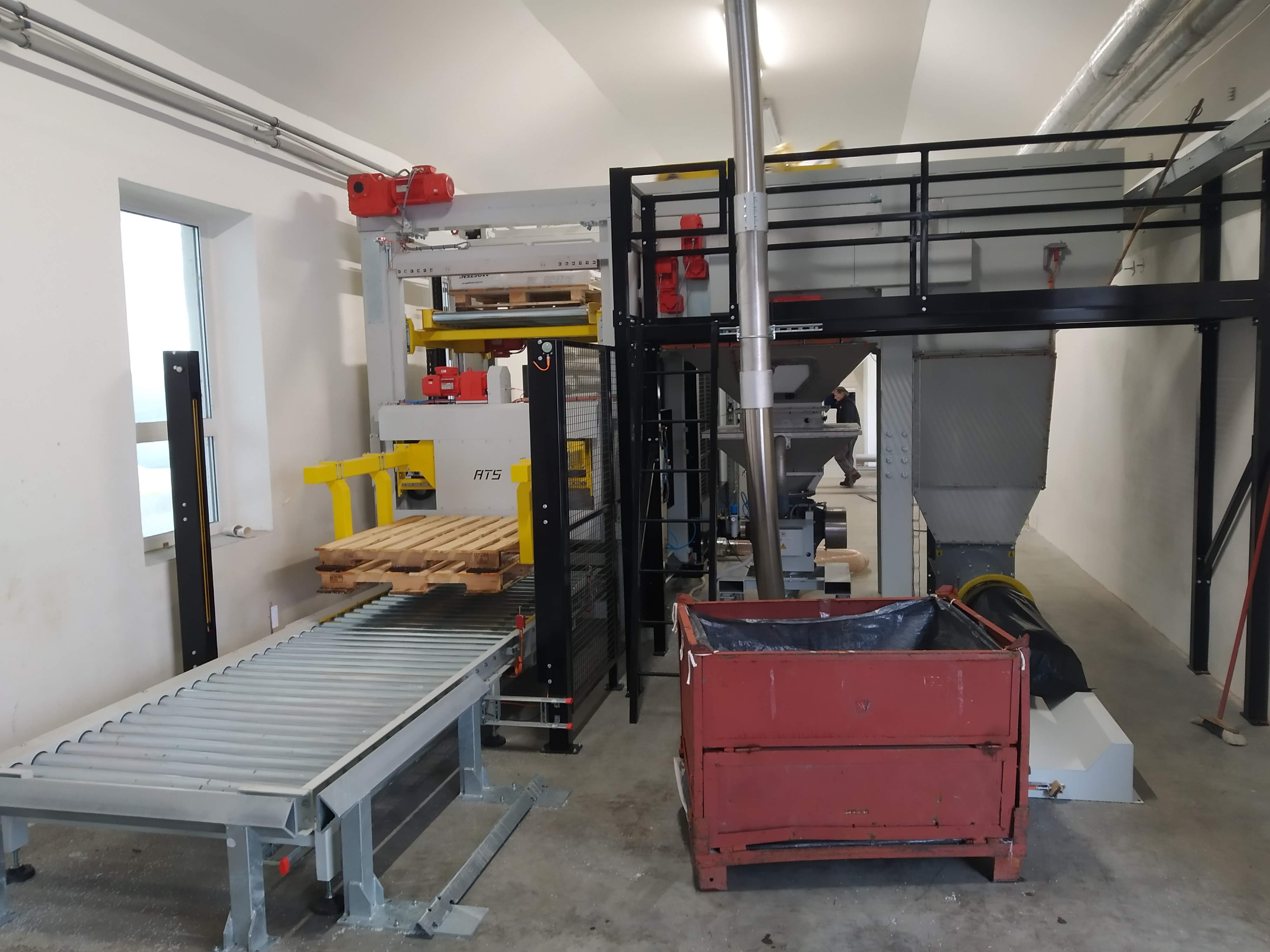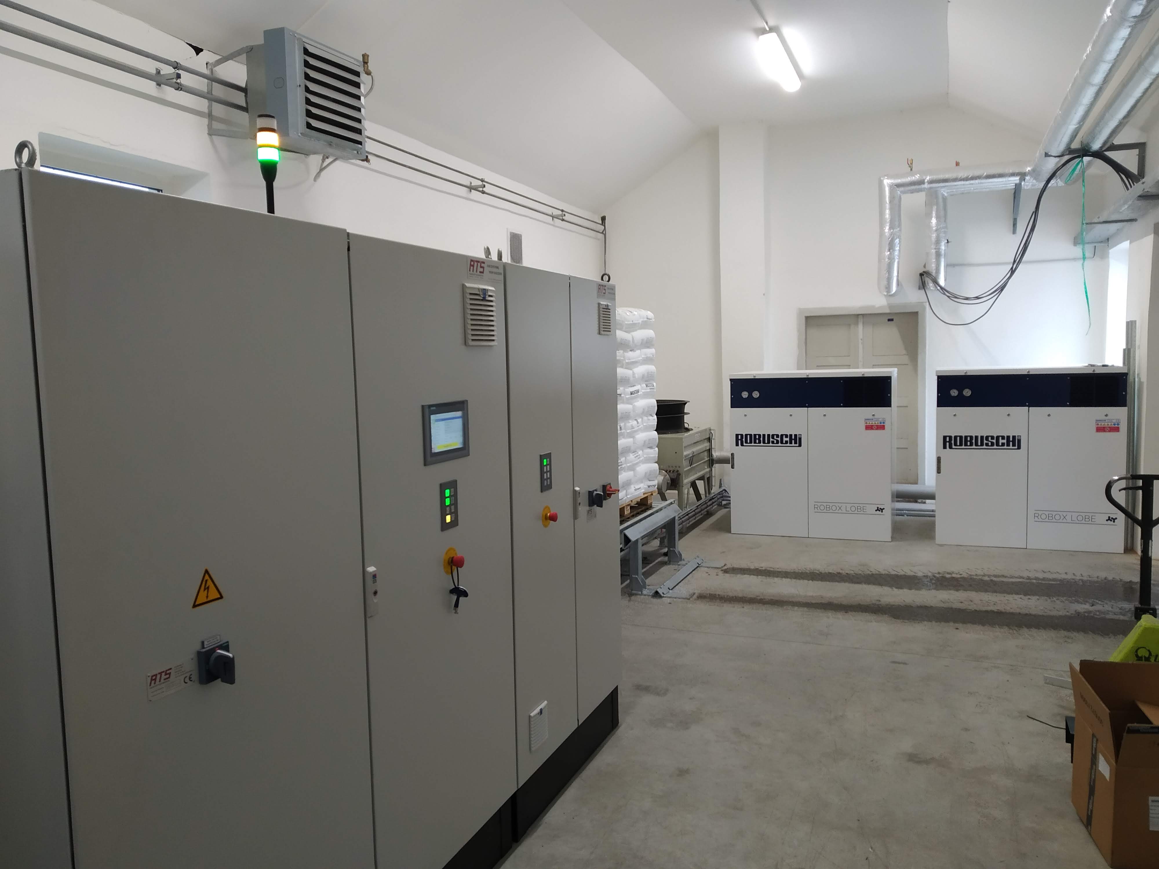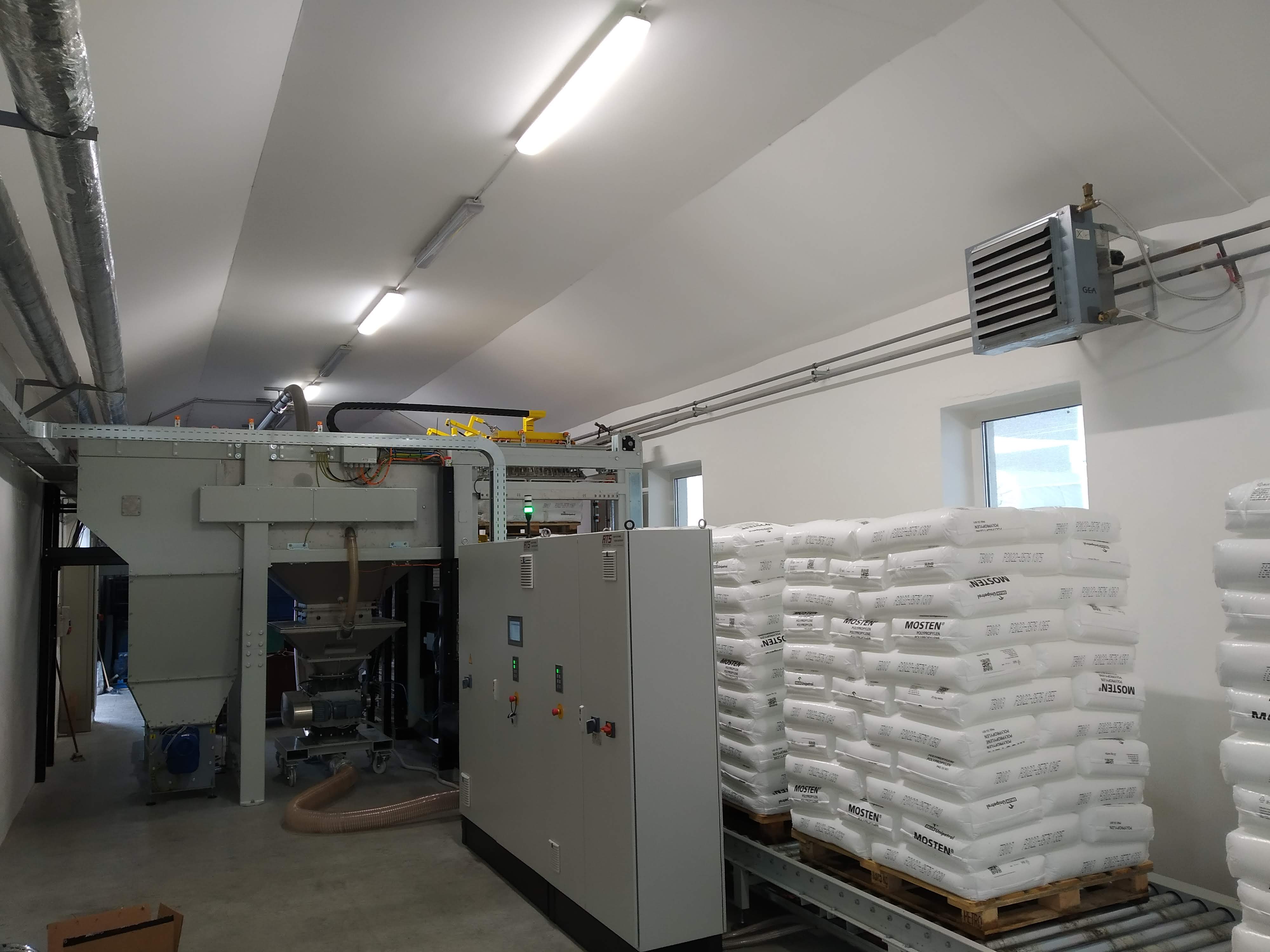 - automatická linka pro vyprazdňování pytlů s plastovým granulátem