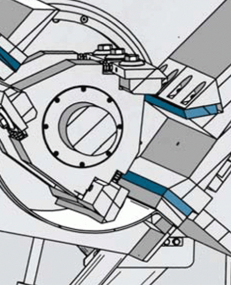 „Smart rotor“ = Jednotlivé segmenty upnuty na hřídel rozebiratelným spojem, což umožňuje jejich jednoduchou výměnu. Krátké otočné rotorové nože pro snadnou manipulaci a nastavení.
