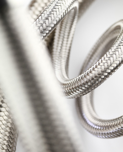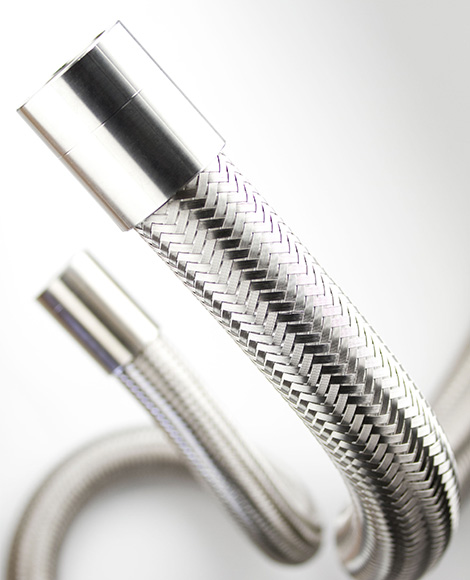 Vysoce kvalitní hadice z PTFE s drátěným opletem z nerezové oceli pro rozvody chladícího média systémů regulace teploty.
